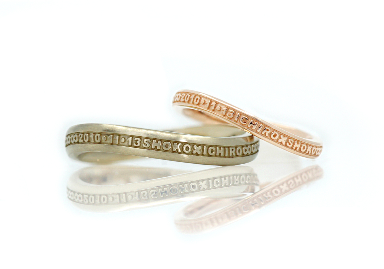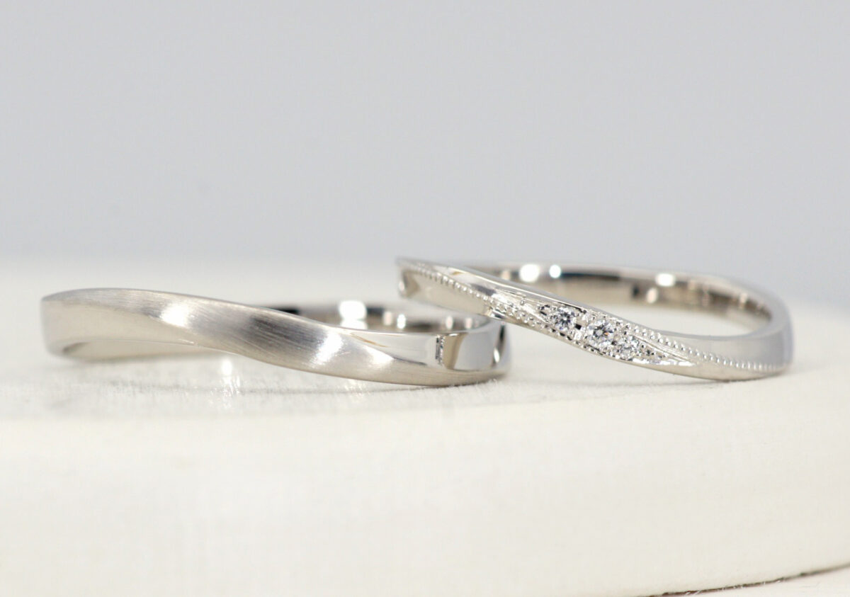 2018.11.12 T様Y様はオーダーメイドで結婚指輪をご購入いただきました。2本を重ねると流れるようなラインが現れます。[詳しくはこちら]