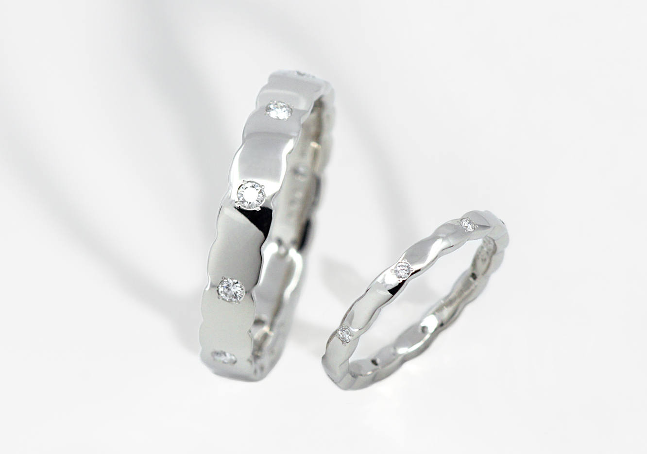 2021.3.8 アトリエ春のオリジナルブライダルリングReve(レーヴ)に女性は宝石を5石追加され、男性は表面加工を加え、それぞれが自分好みにアレンジされました☆[詳しくはこちら]