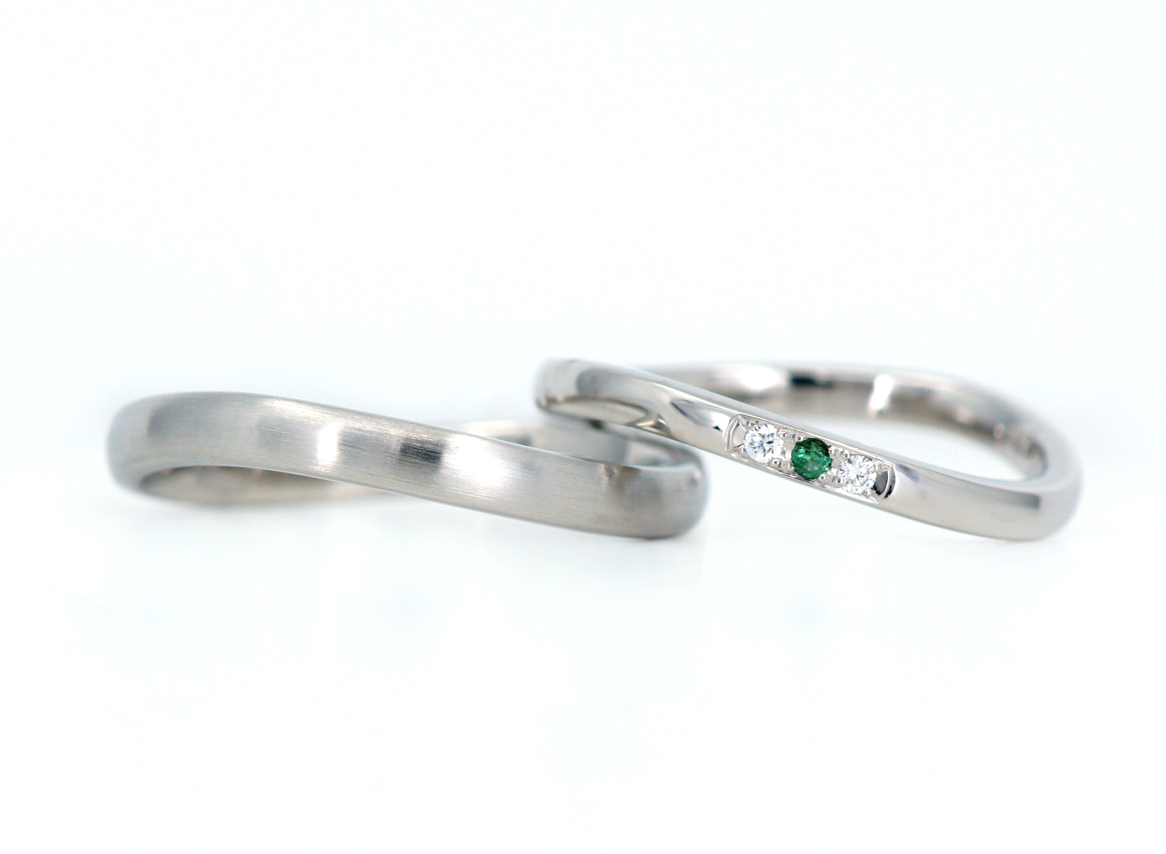 2018.11.12 T様Y様はオーダーメイドで結婚指輪をご購入いただきました。2本を重ねると流れるようなラインが現れます。[詳しくはこちら]