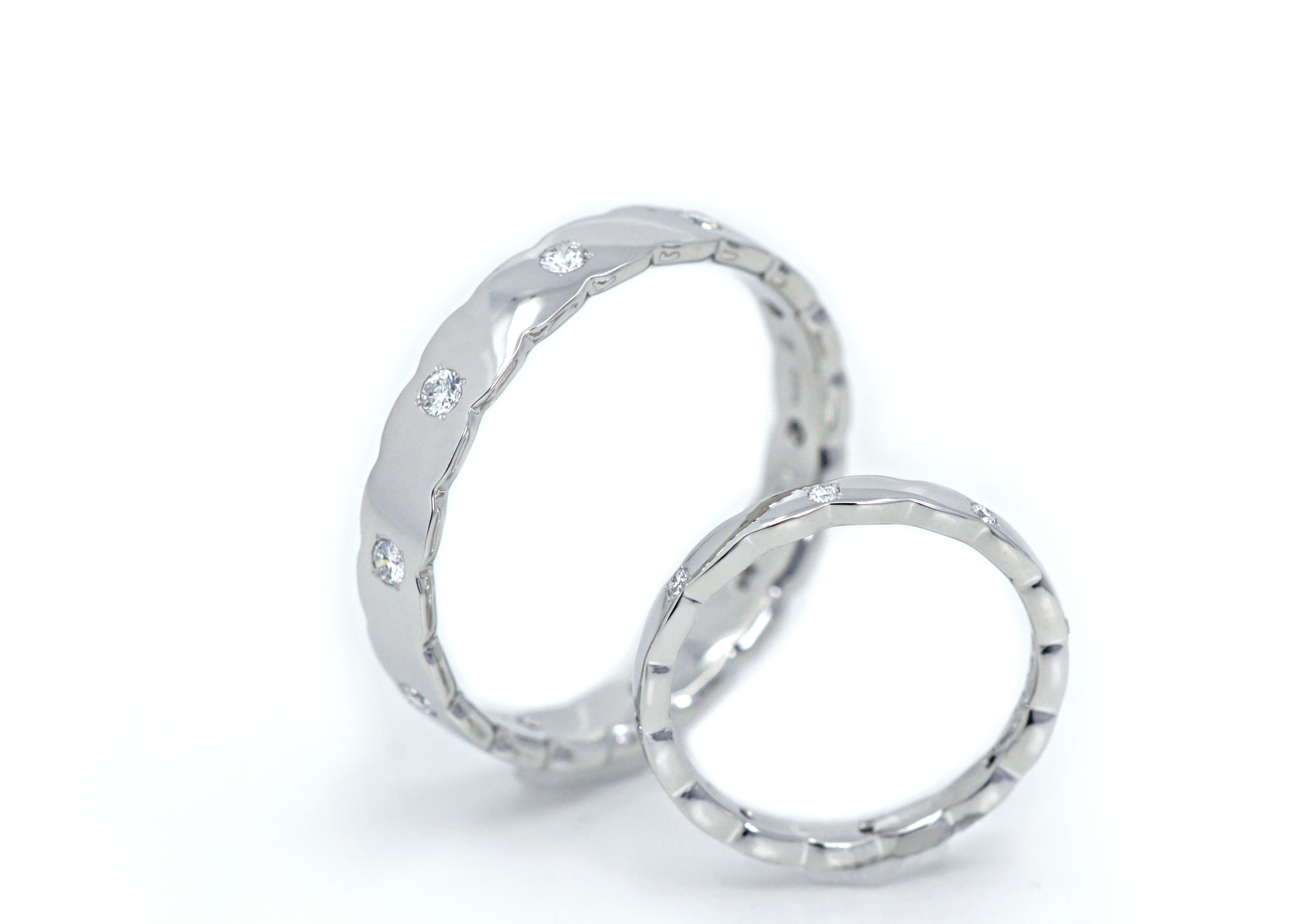 2021.5.24 守山市のT様M様からは細かな槌目加工を施した、個性的な結婚指輪をオーダーいただきました。[詳しくはこちら]