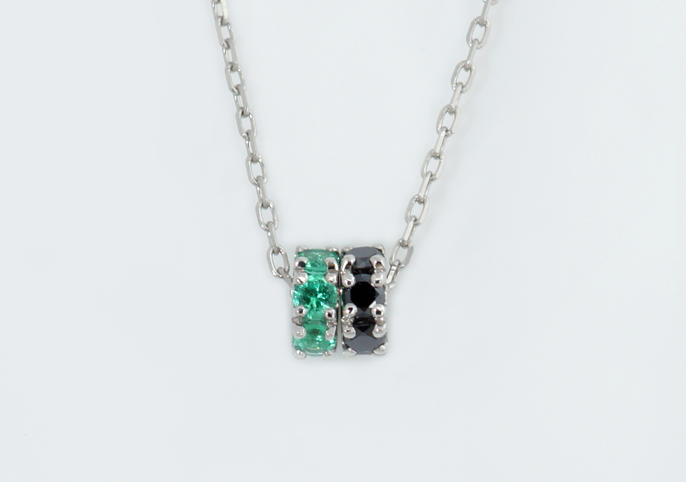 エメラルドとブラックダイヤを留めた